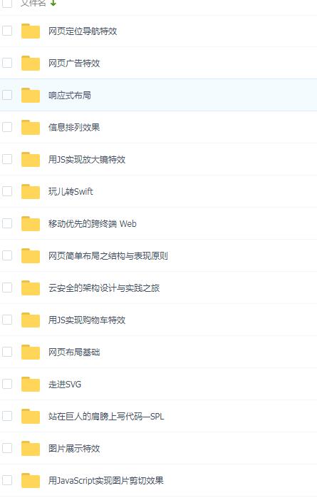 前端开发视频教程,网页定位导航特效,网页广告特别效果,响应式布局,信息排列效果,用JS做放大镜特效,移动优先,运安全的架构设计与实践,等